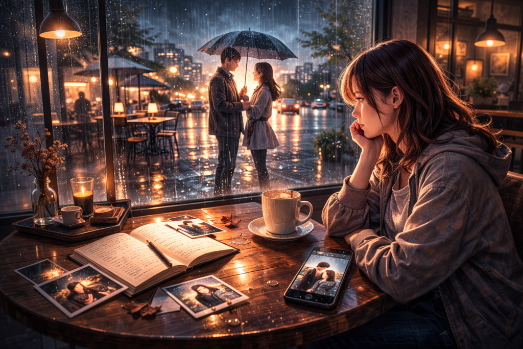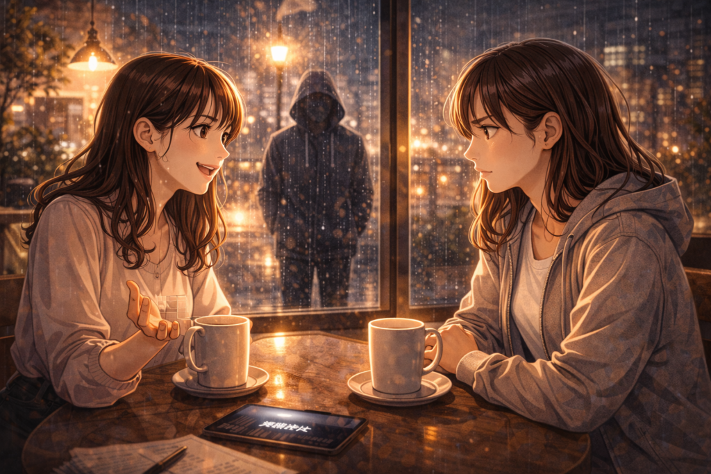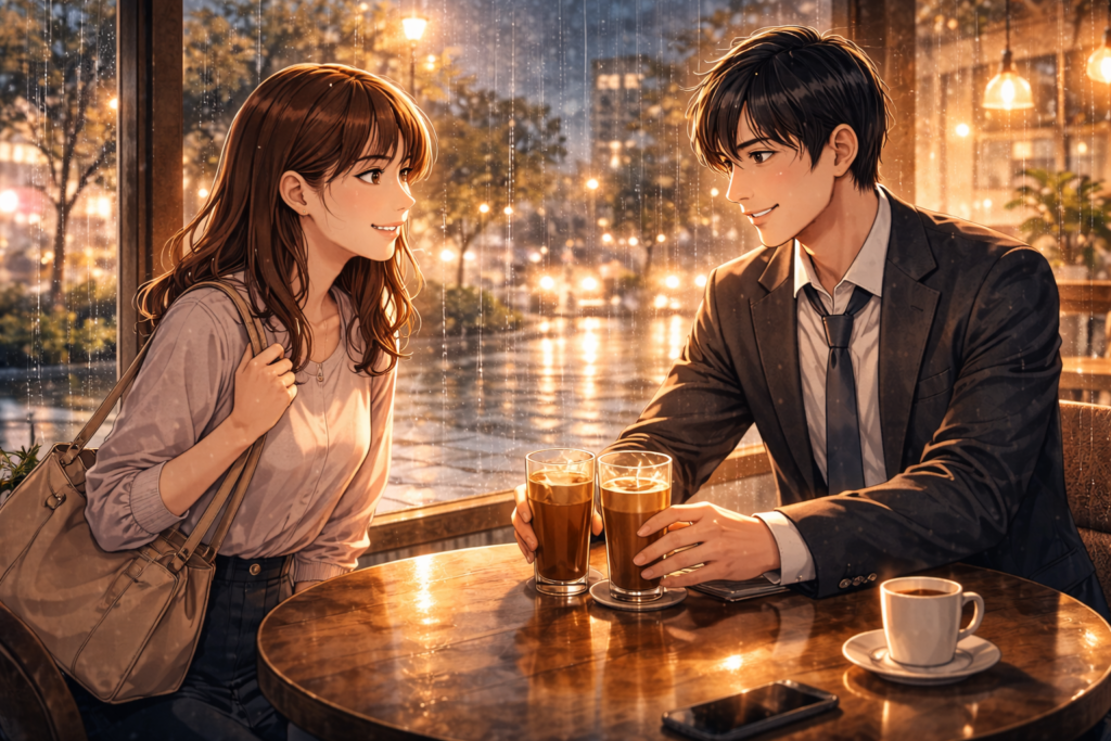 「雨の日のカフェで出会いました」