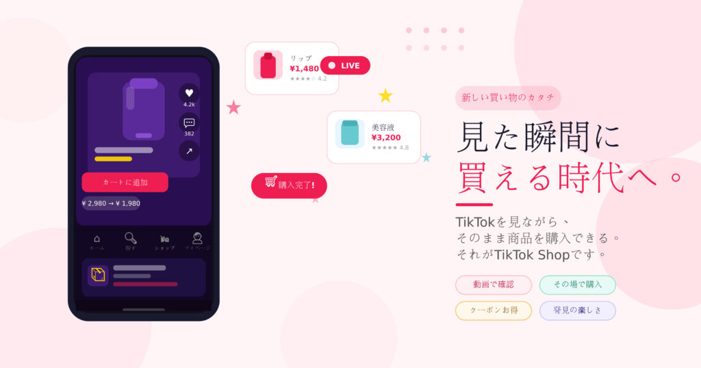 TikTok Shopは、動画を見ながら自然に商品と出会い、そのままスムーズに購入できる「新しい買い物のかたち」です。従来のECにはなかったエンタメ性・リアルタイム性・発見の楽しさが詰まっており、一度体験するとその便利さと面白さに驚くはずです。
